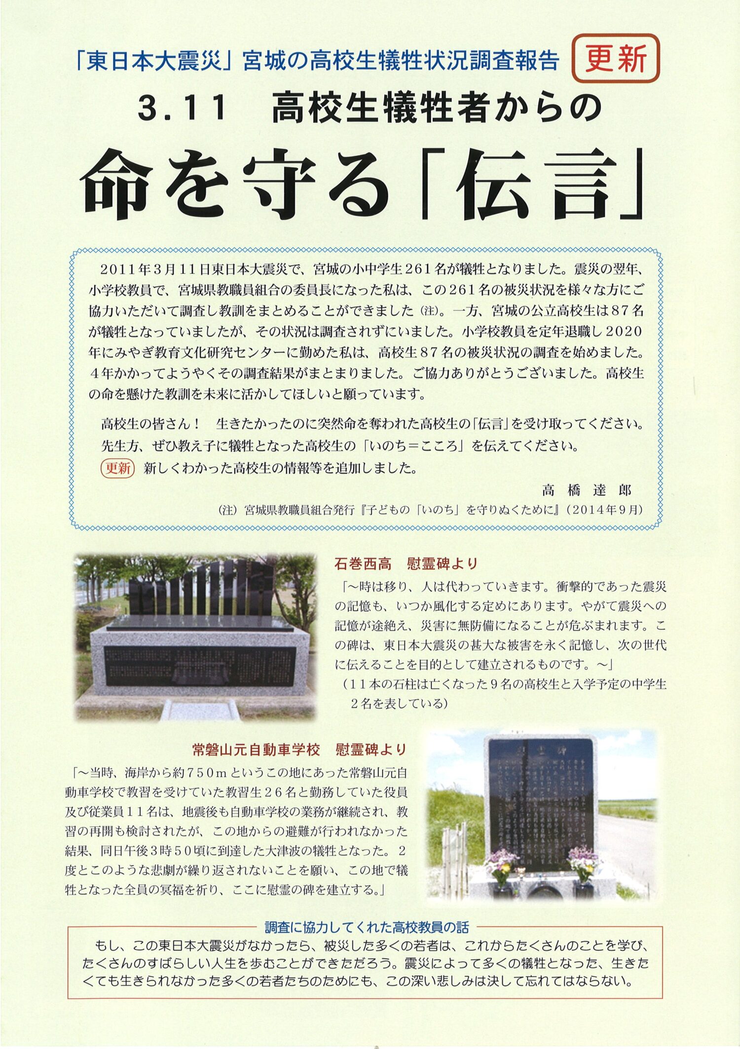 3.11高校生犠牲者からの命を守る「伝言」